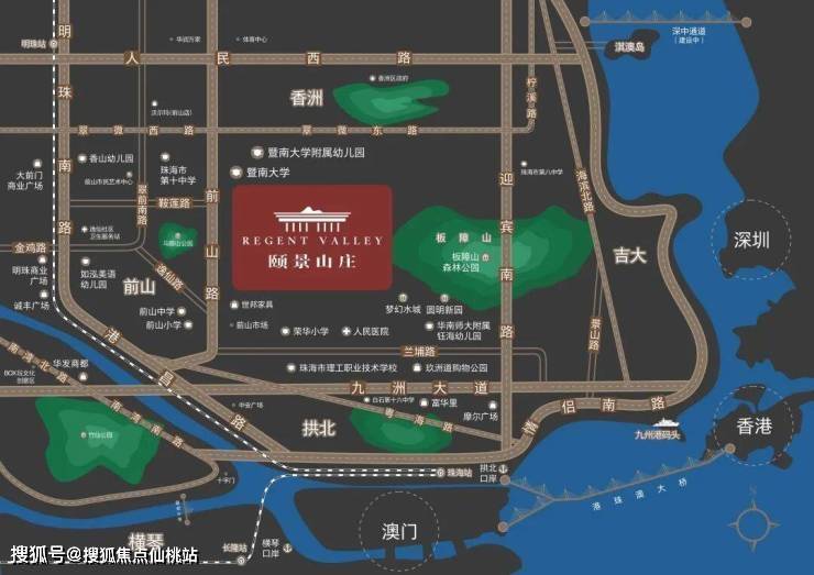 珠海市前山核心位置,南边依板障山脉,板障山是横跨珠海市区的龙脉、富人集聚区,而板障山森林公园是市区瞰海、揽山、阅城的最佳胜地,是喧闹繁市中自然宜居最好的体现。