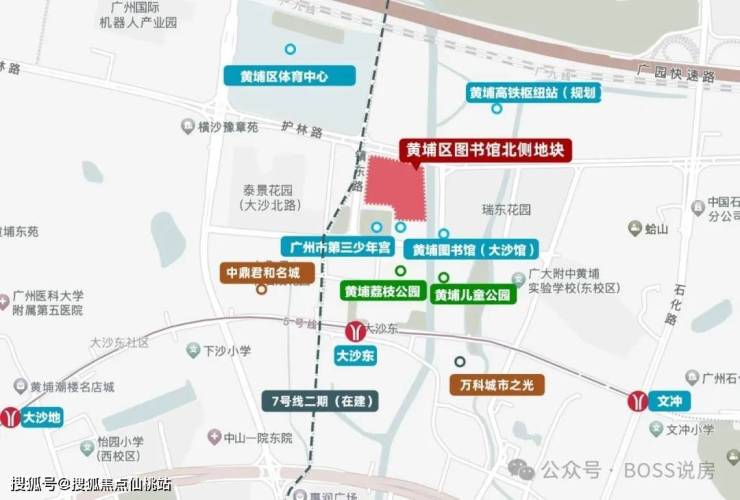 项目位于黄埔图书馆的北侧,距离5号线和7号线交汇站(大沙东站)约500米距离,周边生活配套也十分齐全,步行范围内就有黄埔体育中心、怡园小学、86中、黄埔儿童公园,以及前面提到的图书馆、少年宫。