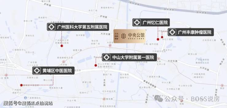 周边2公里范围内有中山大学附属第一医院东院、广州医科大学附属第五医院等两所三甲医院,还有黄埔区中医医院、广州市黄埔区妇幼保健院等,医疗资源充足。