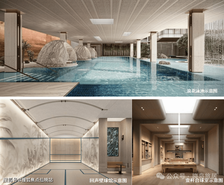 地下会所含泳池、业主食堂、私宴厅、茶室、棋牌室、壁球室、台球室等配套;