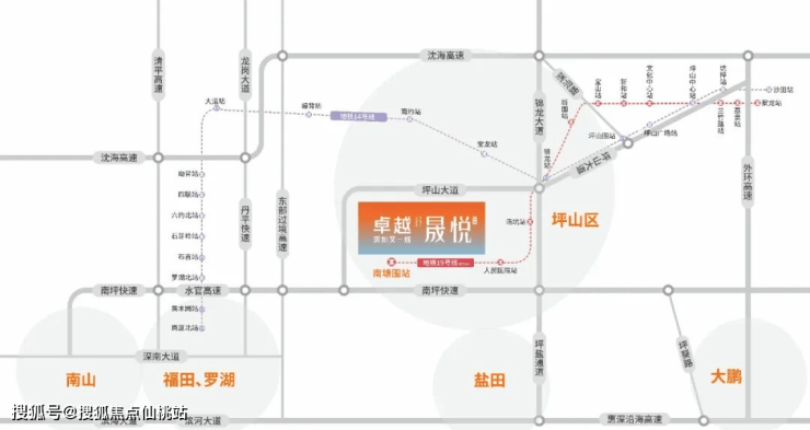 交通:南坪快速、东部过境高速(在建中)、坪盐通道,3条快速速抵罗湖福田,约15km盐田沙头角、约25km罗湖莲塘/香港、约35km福田、约40km南山