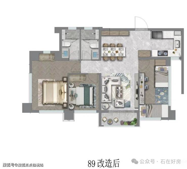 • 89㎡三房两卫(中间户):刚需优选的“空间王者”,四开间朝南搭配三面采光,让客厅、主卧、次卧均能沐浴充足阳光。约90%-93%的高得房率,告别空间浪费,小面积也能实现大舒适,满足三口之家的日常所需与收纳需求。