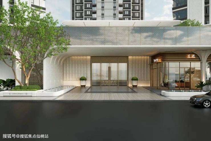现代美学立面,历久弥新: 建筑整体承袭棠系“生命之树”设计语言,塔楼中轴对称,线条挺拔利落。大面积光幕玻璃与米白色石材基座相结合,辅以铝板线条点缀,既有现代建筑的轻盈通透,又不失恒久质感。