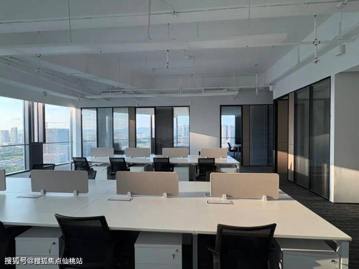 空间采用无柱式设计,搭配4.2米层高,打造通透开阔的办公场域,视野从桌面自然延伸至窗外,重塑现代办公舒适标准。110米顶层纵深视野、双层LOW-E玻璃幕墙将花都中轴天际线全景纳入眼底。