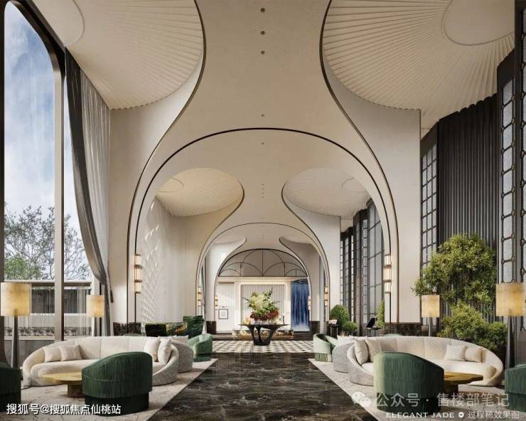 人文氤氲的经久书香:下沉式庭院,以流景水院之雅,将人文感沁入庭院之中。