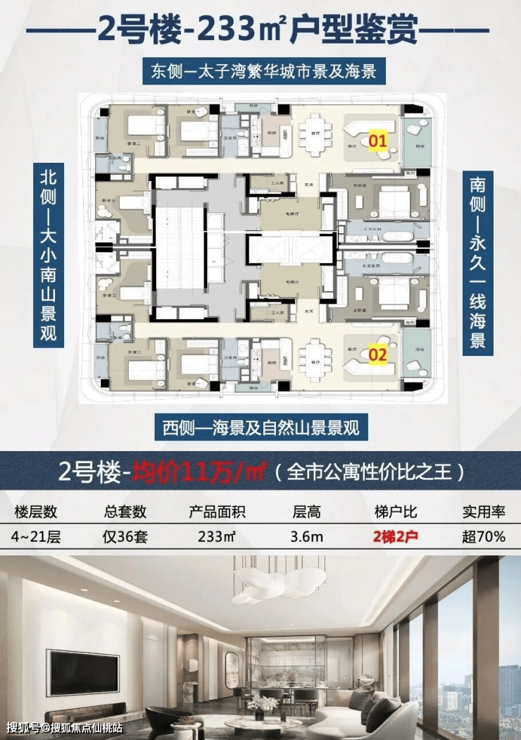 · 空间规划:约50㎡南向海景主卧套房,配备独立家庭影视厅或儿童娱乐空间