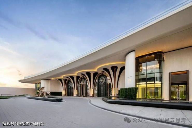 采用轻盈独特的滨水风格和海洋文化流体美学进行立面设计。以天空游轮为灵感,流畅的弧线设计立面采用幕墙设计+曲面玻璃,体现自由浪漫的滨海气息。