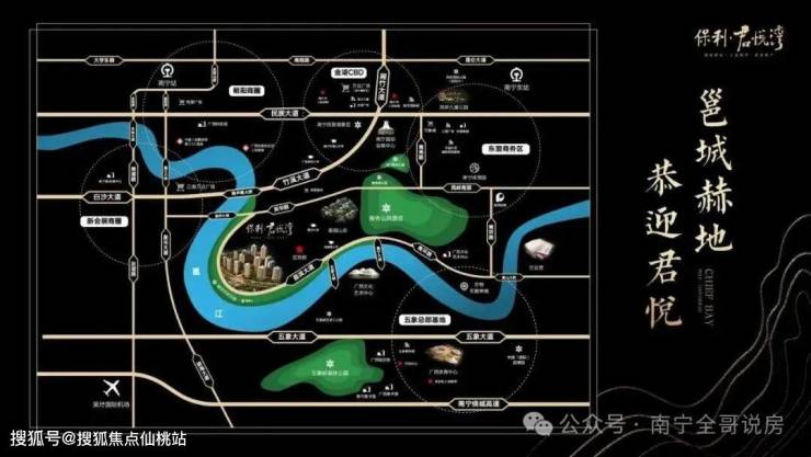2、区域优势:保利君悦湾地处南宁柳沙半岛湾位置。整个项目如贝壳般镶嵌在柳沙公园中,是琅东CBD、东盟商务区及五象新区三区中心交汇核心区域的国宾区板块。是塔尖圈层争相竞抢的国家湾区贵重资产。