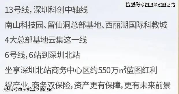 入住和合时代,抢占深圳高新线超级机遇。13号线“豪宅线”,与顶级豪宅共享一线地铁13号线纵贯深圳豪宅片区,串联深圳湾、后海、科技园、西丽等豪宅及高端公寓社区,深圳湾1号(约38万元/㎡)、恒裕滨城(约35万元/㎡)、华润深圳湾瑞府(约30万元/㎡)、恒裕深圳湾(约26万元/㎡)、万科云城(约10万元/㎡)等深圳一线高端物业璀璨云集。