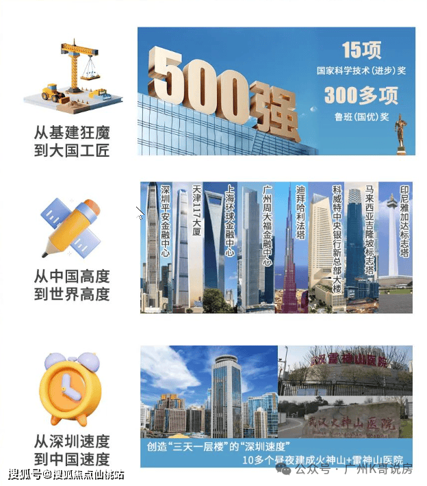 中建三局:全球最大的投资集团之一——中建集团旗下最具竞争力的优秀排头兵。参建50余座300米以上超高楼及8座摩天大楼,缔造“深圳速度”和“中国速度”建筑新奇迹。累计荣获15项国家科技进步奖,300余项鲁班(国优)奖。