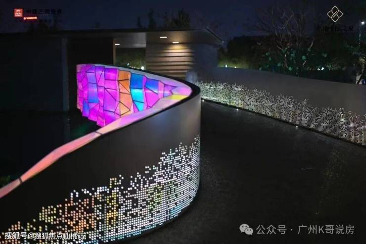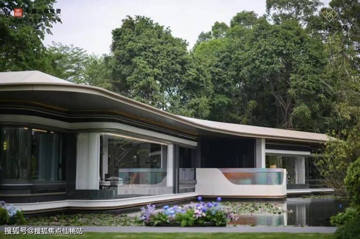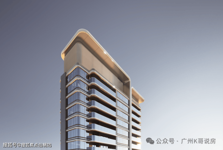 微弧流线设计,区别于多数豪宅的横平竖直线条,配合无柱转角设计,形成曲面屏式光幕立面。