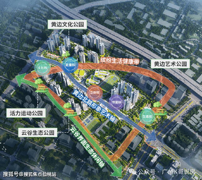 项目紧邻黄边艺术公园,未来将与黄边文化公园、活力运动公园、云谷生态公园四大主题公园相串联,形成自然与人文共生的活力空间。