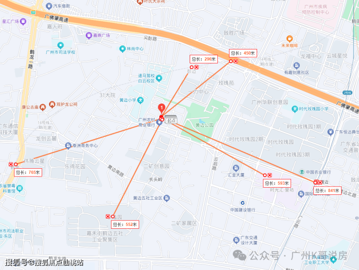 交通方面,地铁2号线的黄边站几百米,3站白云新城,直达江南西,广州南。1站换乘嘉⽲望岗(地铁2/3/14号线交汇)。在建的14号线彭边站,只有两三百米。