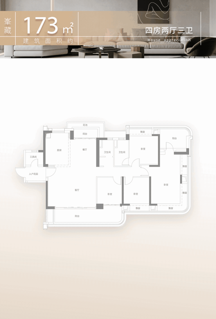 首开户型:建筑面积约128㎡ -173㎡-226㎡