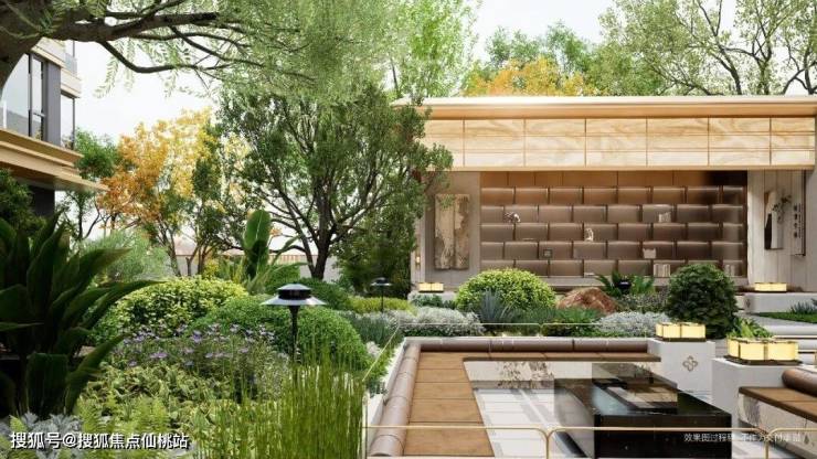 花素缦庭融合会客区、沙生植物等元素,打造休闲娱乐、会客交友于一体的户外雅境。
