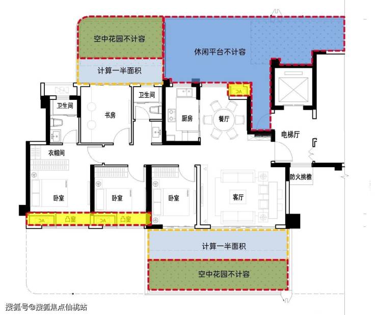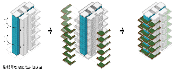 每层每户都配备南向空中花园,采用转角厅+空中花园的形式,让奇偶层空中花园始终围绕客厅核心功能展开,在露台设计上均衡户外户内关系,最大限度让出公共空间。打造挑高约6.1米的立体空中双露台,实现户户光线满分。
