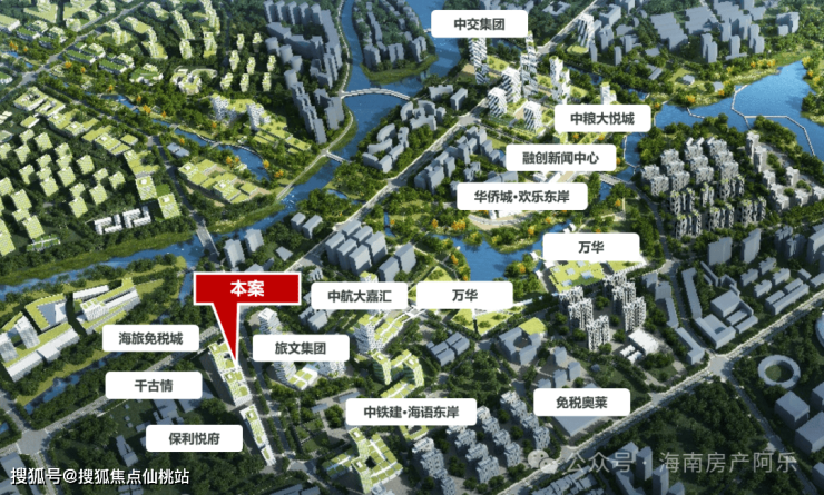 项目位于三亚市吉阳区迎宾路(海旅免税城北侧)。随着自由贸易港政策落地,在总部经济及中央商务区规划中,东岸单元作为建设大型综合消费商圈+总部经济核心区。汇集中粮、中交、保利、中航、中铁建、五矿等世界500强企业,已成为三亚城市功能上的中轴城心,凝聚着最重要的部门,昭示着三亚未来发展的方向,区域价值未来可期。