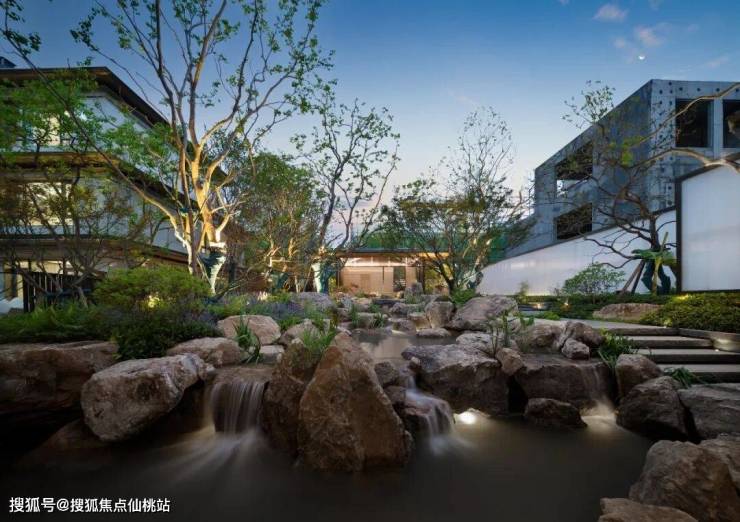 北区配备约3000㎡酒店式会所花园,地下会所承载艺术展示与社交功能;南区通过自然山水的礼序山石园林步入约1500㎡地上泛会所花园区。设计汲取古代文人雅士隐逸山林的空间意象,融入山、泉、林、台、石等元素,巧妙结合书院文化内涵与自然意境,营造富有东方哲思的景观体验。