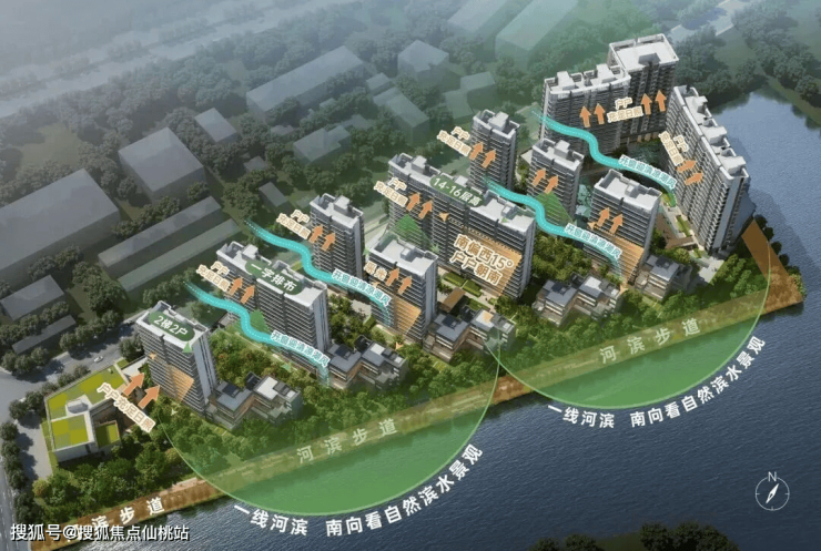 住宅产品主要以小高层和叠墅为主,其中16栋为14-16层的小高层住宅,5栋临河的4层叠墅。