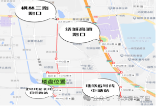 地铁2号线延长线百合路站实测400米,地铁6号线中塘站1.63公里。6号线有些距离,不要被忽悠,绕城高速路口2.43公里。枫林三路路口1.66公里。
