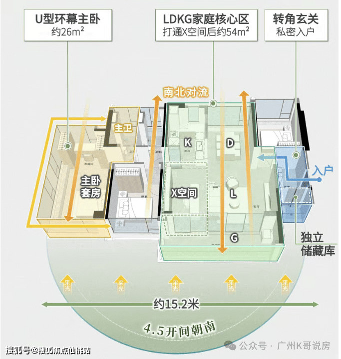 搭配约6.1米的观景阳台,与北向形成完美的南北对流,可扩展的LDKB无界方厅。