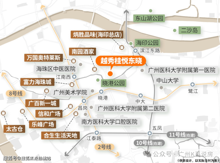 三地铁交汇,项目距离晓港地铁站仅约600米(数据来源:百度地图)