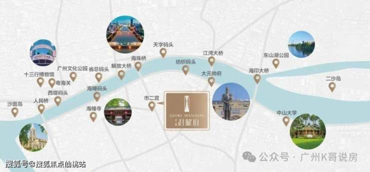 从项目自驾出发,行驶在江南大道北,穿过海珠桥/解放桥,就能抵达越秀区,经过海珠广场、北京路步行街、人民公园、中山纪念堂,直达广东省政府、广州市政府。