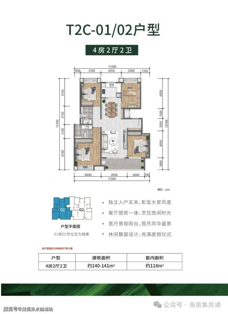 →户型面积段:约110-141㎡(3房/4房)