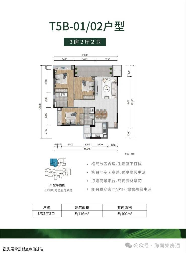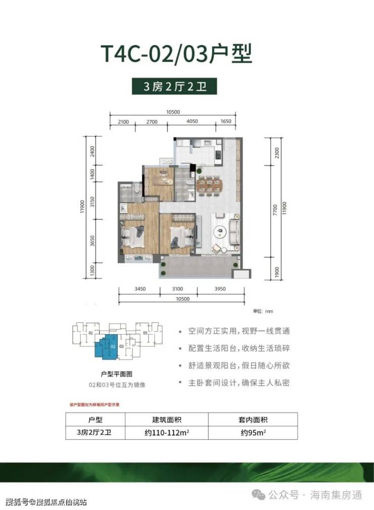 -全明户型,方正实用、公摊低,大主卧、超大景观阳台设计
