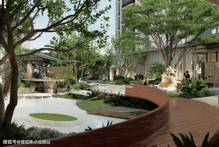 项目打造三进归家礼序,从超17.9米宽大门开始,再到约3000㎡活力口袋公园,最后是约70㎡超级首层入户大堂,为归家动线注入尊崇感与归属感。