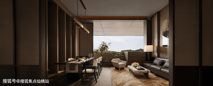 休闲区的窗口更是完全打通,尽可能将空间打开,落地窗的设计让室内布局与室外的景观相互渗透,最大限度地引进花城的光影与四季变幻。