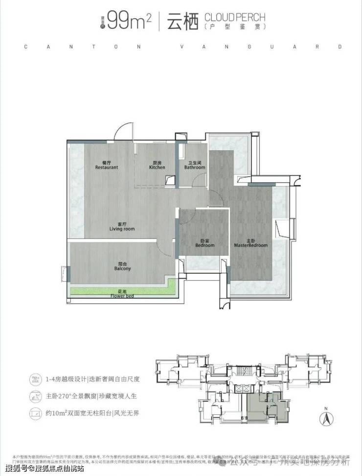 98㎡全能3+1房2卫,6.8 米奢阔横厅。
