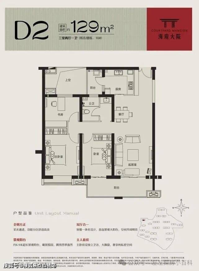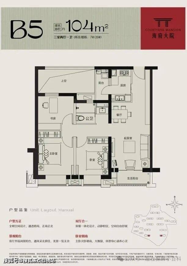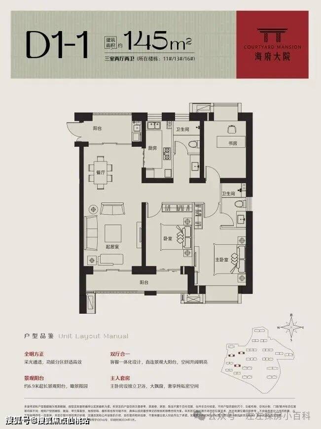 海府大院以新中式风格,珍罕的板式建筑,正南正北布局,面面向阳,光线涵养生活每一寸空间,户户可观景,层层可凭栏,至阔楼间距更将胜景一览无余。