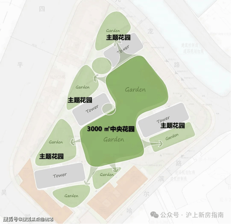 外滩瑞府突破市区项目常见的「兵列树阵式」布局,通过建筑楼体的精密偏转,形成罕见的围合式社区形态。