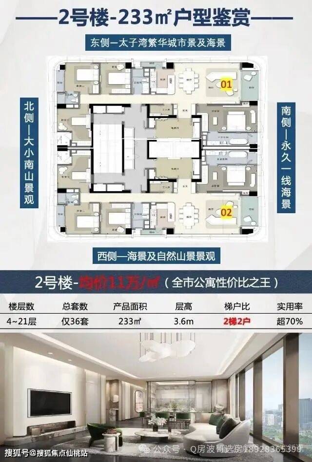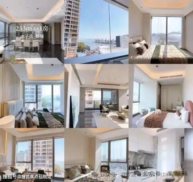 · 物业类型:商务公寓(40年产权)· 交付标准:毛坯交付· 建筑规格:双塔结构,总高21/25层· 梯户比:3梯2户或2梯2户,专梯入户· 水电标准:民水民电· 物业公司:长富物业· 物业费用:12.8元/㎡/月🏠 户型深度解读【 233户型 】4+1房2厅3卫💎户型亮点:•超13m大面宽客餐连厅,奢享极致景观面•三阳台设计,近9m海景阳台面宽•3.6m阔绰层高,高挑空间和绝佳景观相契合233㎡ 4+1房2厅3卫此户型专为注重海景体验与家庭功能分区的高端家庭设计:·