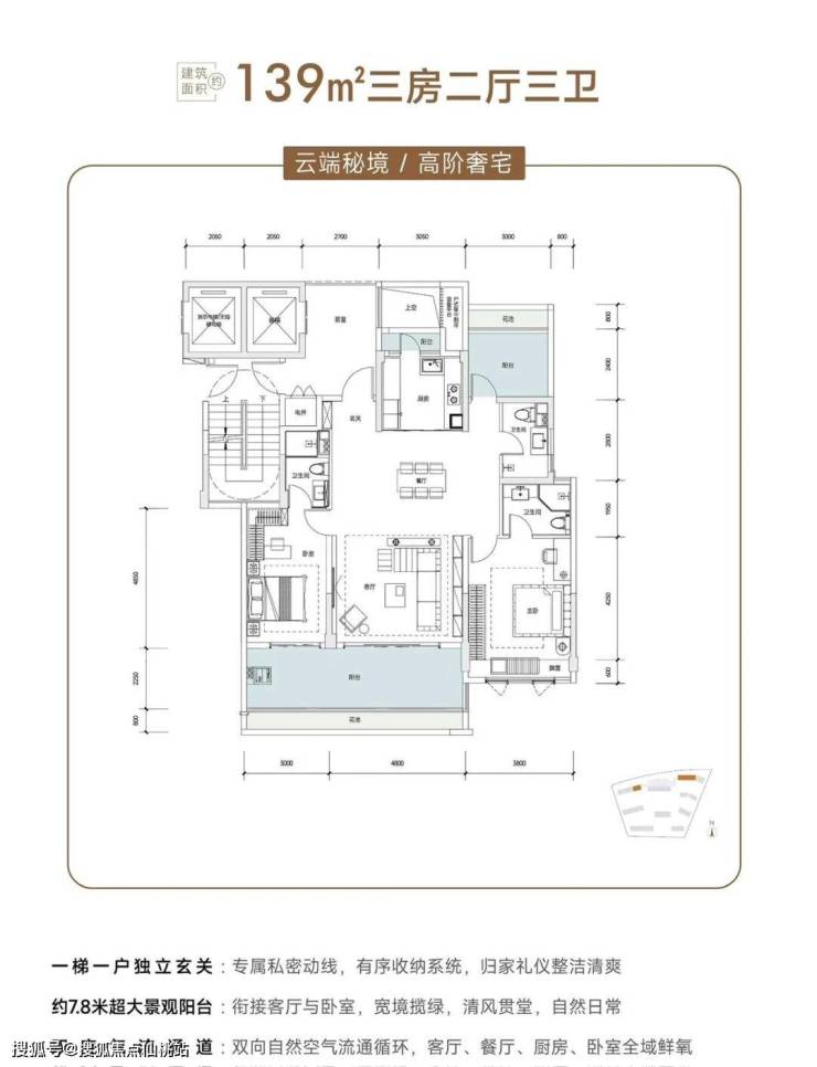139平米 3房3卫