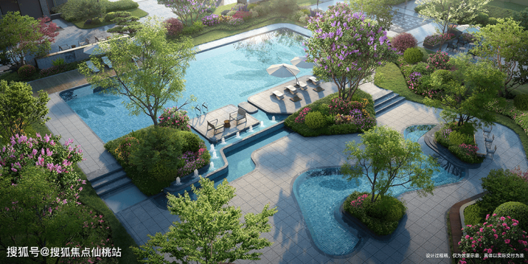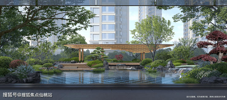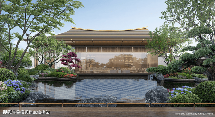 譬如在园林上,项目匠造三进院落,规划建设约3.2万㎡超大中庭景观,臻选造型置石、名贵花木等,将廊、桥、亭、榭巧妙串联出游园归家动线,营造极具江南气韵的诗意东方度假式园林,可观可游可憩。