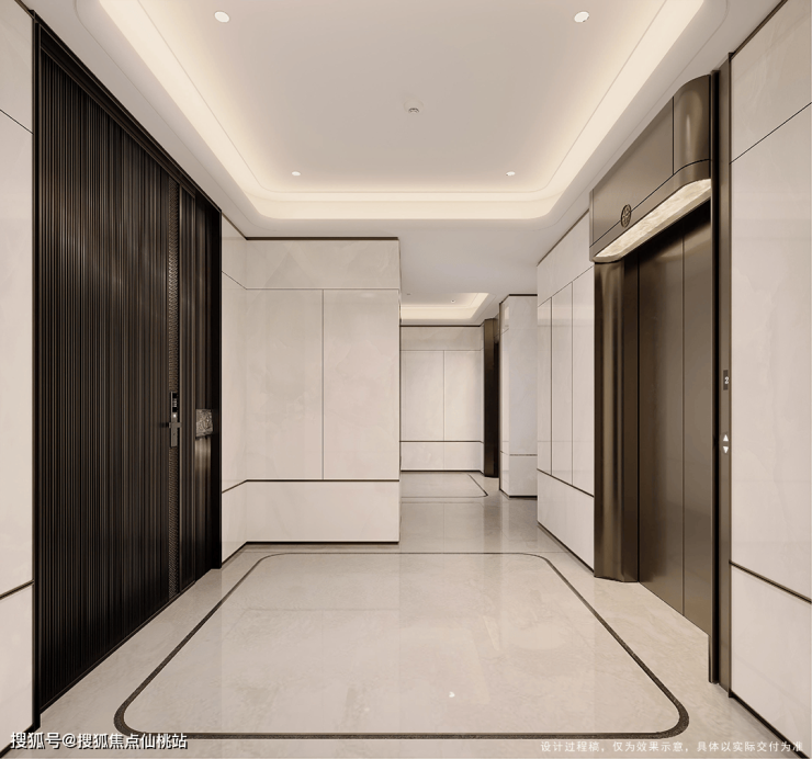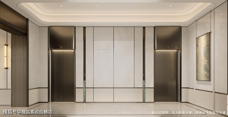 内部公区亦极致考究:首层挑高约3.7米,从精装大堂至各层电梯厅,空间敞亮通透,材质典雅设计精湛,铺陈精致温馨的奢适归家氛围,质感处处彰显,带来高级酒店般的奢华感。