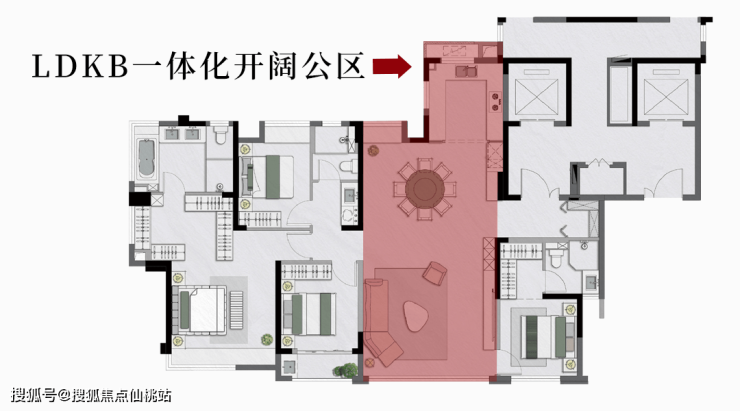 项目全系户型皆为LDKB一体化设计,景观阳台作为客餐厅的空间拓展形成了洄游动线,丰富了社交场域的广度,强化了家庭生活的效率,极大地便利了家庭成员之间的互动、沟通。