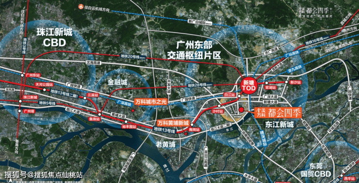 地铁——最近的现成地铁是广州地铁13号线沙村站和白江站附近;一个站到新塘站TOD枢纽中心,9轨交汇(4都市地铁,3国家铁路,2城际轨道),连接穗莞深港; 乘新白广城际可直达白云机场,乘穗莞深城际可直达宝安机场,快速融入湾区生活圈;