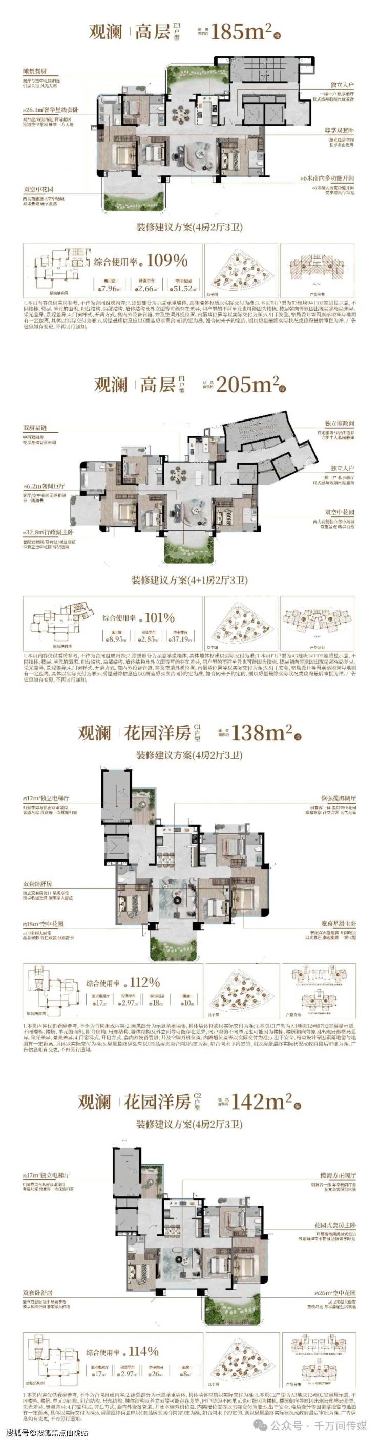 在项目规划上,共分两个地块打造,户型跨度较大,从89㎡的高层到205㎡的叠拼,能满足刚需到改善的不同需求,而且综合使用率约88-112%,细节设计也比较贴合日常居住。