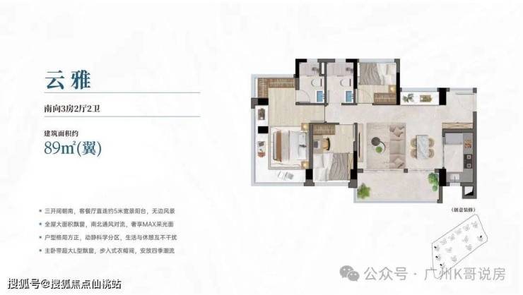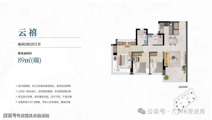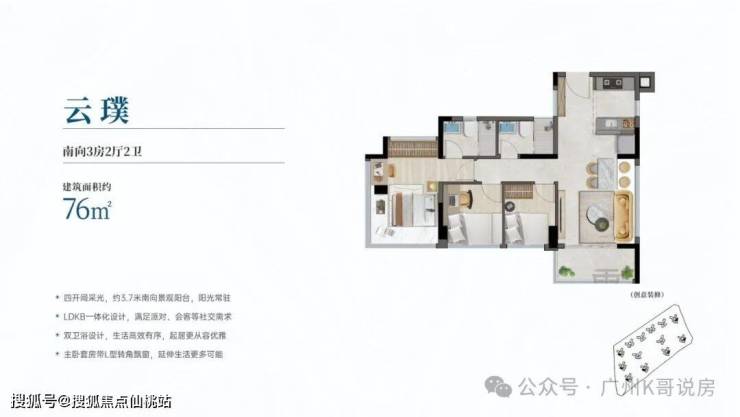 建面约76-142㎡三至五房,户户全南向享大面宽,三至五开间采光,高拓展灵动的户型,户型实用率均超100%,最高可达约115%