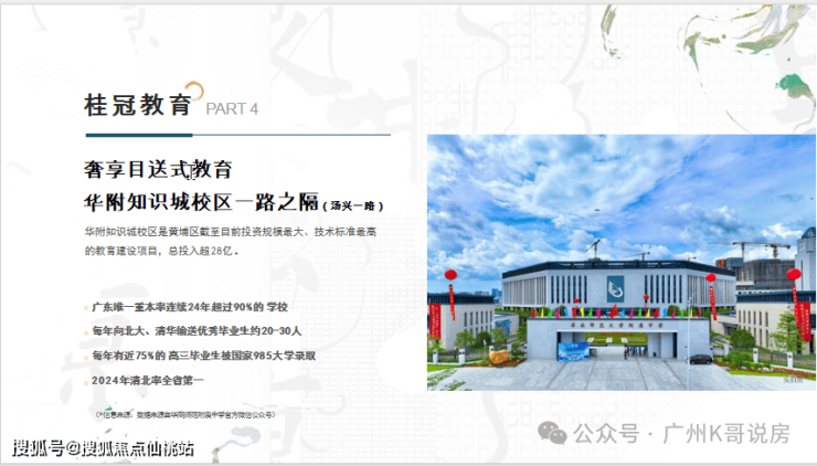 项目一路之隔是华附知识城校区,直线仅100米,该校为黄埔区截至目前投资规模最大、技术标准最高的学校,2023年正式招生,可不是纸面功夫。