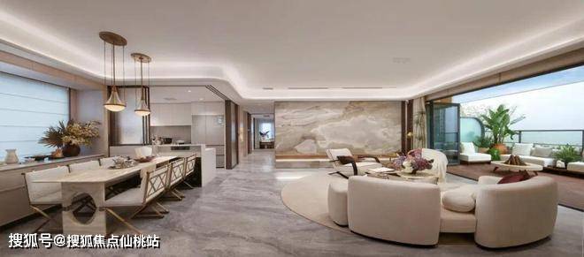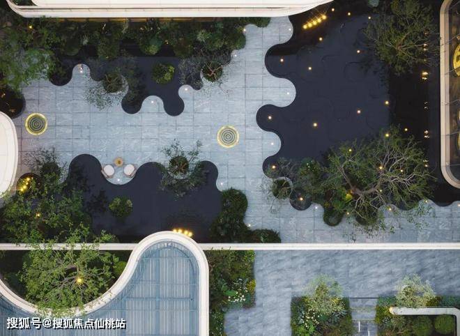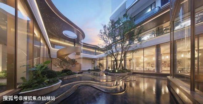 大面积LOW-E玻璃与石材相映,金属线条勾勒灵动曲线,顶部“天空之翼”舒展大气,搭配米白、浅蓝的自然色调,让建筑成为“会呼吸的艺术品”。立体山水楼群高低错落,空中光影庭院随日光流转,复刻“一日之内,光影四时”的诗意,让每一次归家都邂逅东方美学。