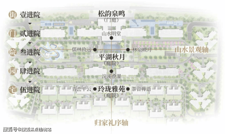 ▫汲取岭南四大名园精华,布局两轴三庭,五进六园,尽显归家礼序。