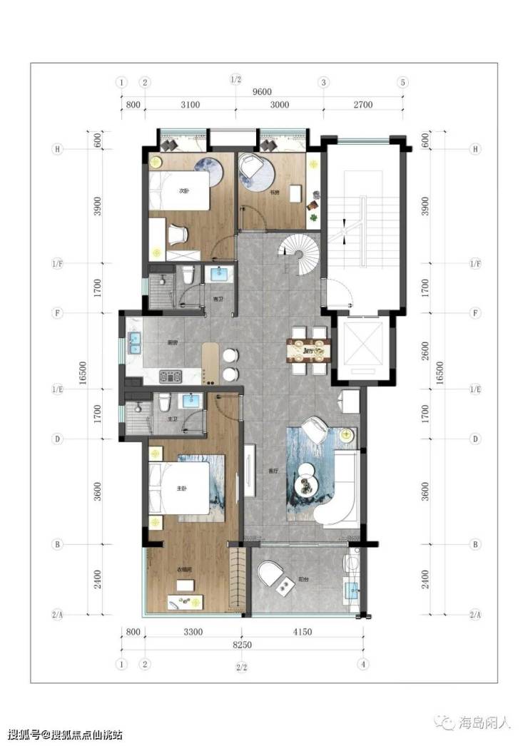 标准层:建筑面积约120㎡,三房两厅两卫。