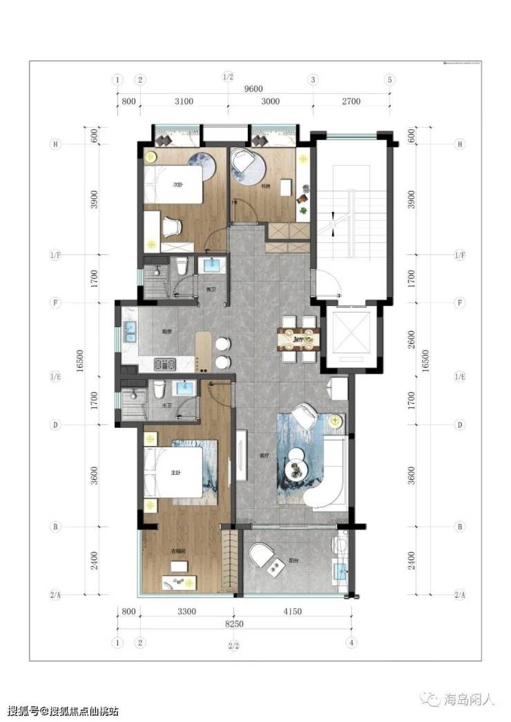 标准层(2层3层)建面:122㎡ 三房两厅两卫