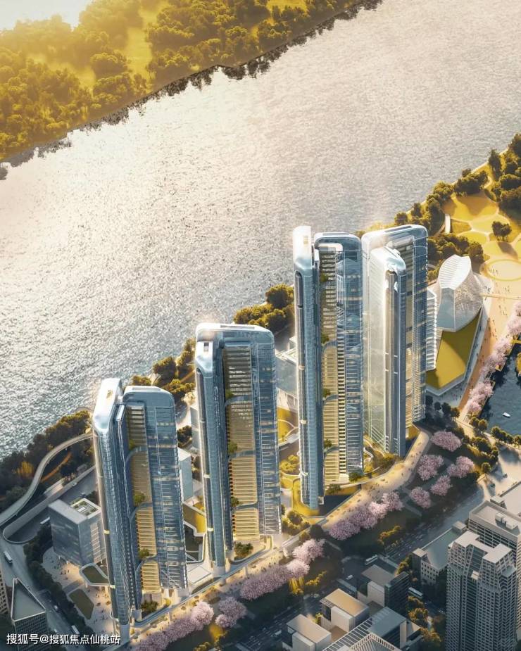全广州首创雁字型,玻璃幕墙外立面,建筑面向两侧江景打开,最大程度拓宽了临江面,从远处看辨识度超高,而且采光和视野都更上一层楼。