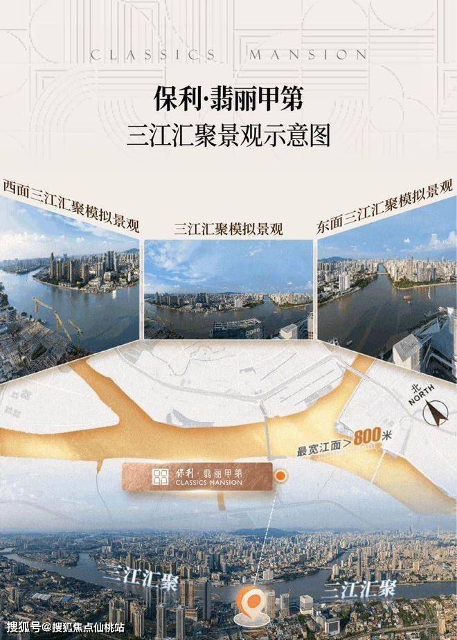 项目约90%产品可望江,最宽享约800米三江汇聚,北临白鹅潭水域,对望沙面岛上的白天鹅宾馆;东北向尽赏羊城八景“鹅潭夜月”;西北向观后航道与西航道的宽阔江景画卷