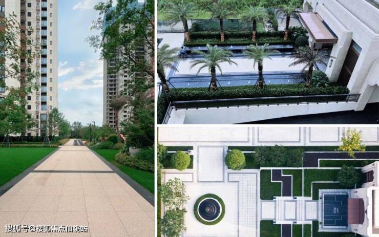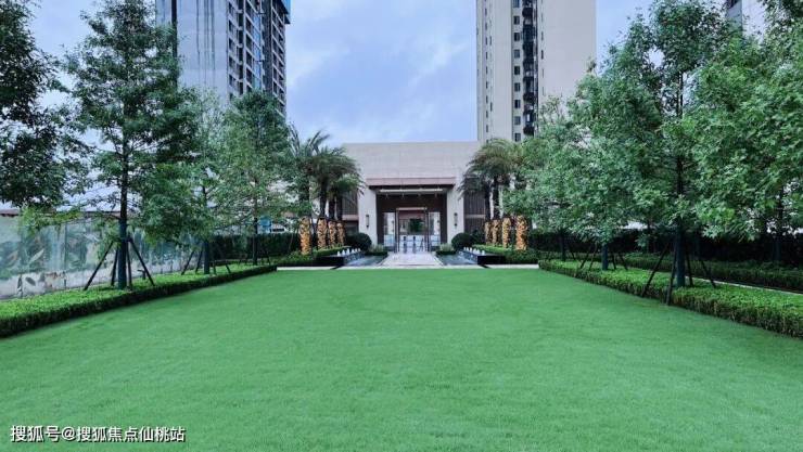 接着是一片绿意盎然的“生态氧吧”,中央大草坪,严格采用几何线条、几何图形和对称手法,可供业主散步、游乐,既营造浪漫归家氛围,又享有静谧、灵动的度假感。